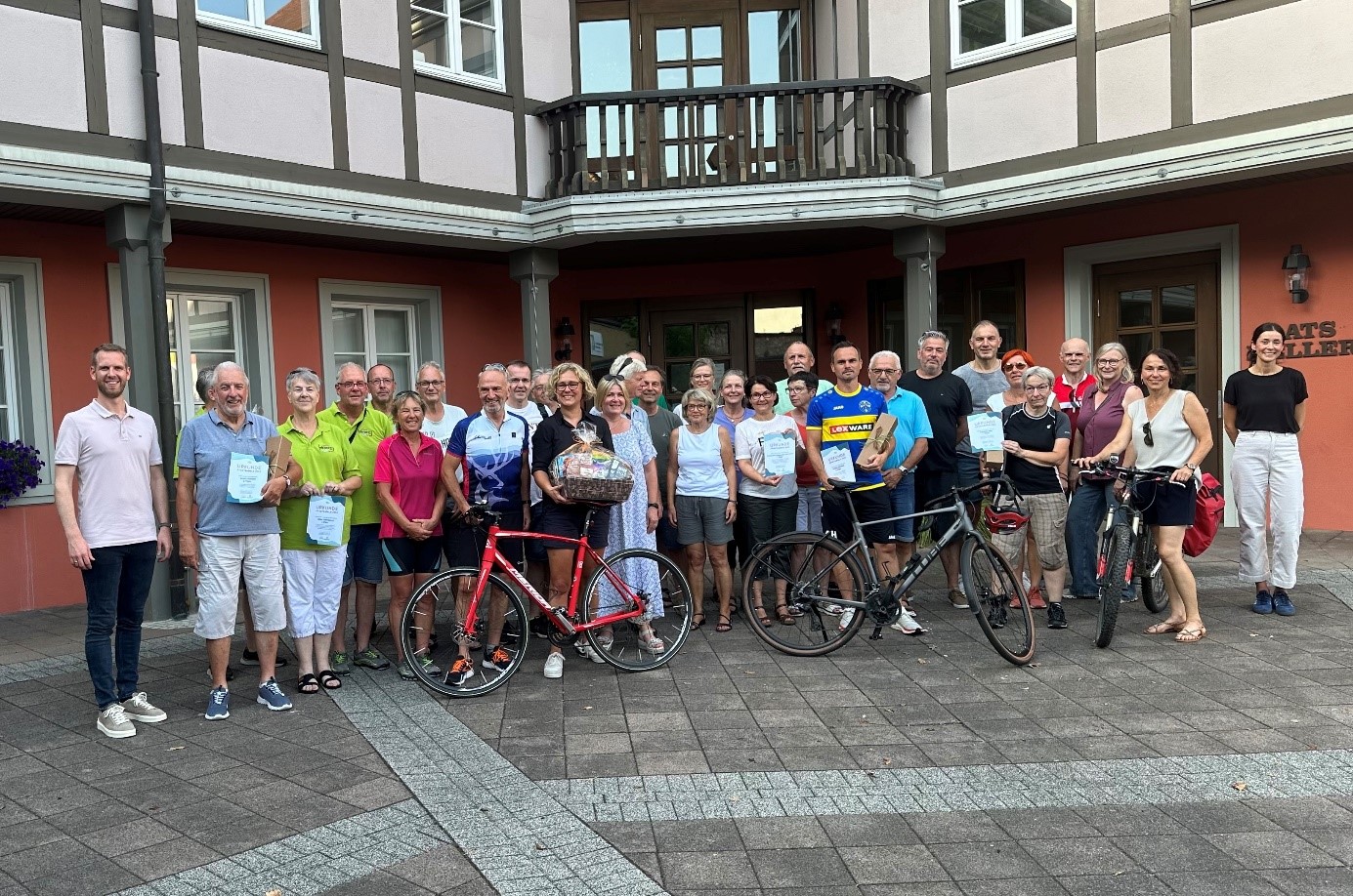 Am 30.07. fand am Rathaus die Siegerehrung mit den ersten Plätzen aus den Kategorien „Team mit den meisten Gesamtkilometern“ und „Team mit den meisten Kilometern pro Kopf“ sowie den drei besten Radler:innen statt.