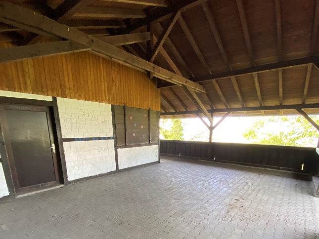 Die Hütte (ca. 60 m²)ist mit einem Waschbecken, einem Holzofen sowie 7 Garnituren Bierbänke ausgestattet.