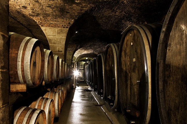 Direkt unter dem Gutsgebäude befindet sich unser historischer Gewölbekeller, entstanden 1847, er wird noch heute zum traditionellen Holzfassausbau genutzt.