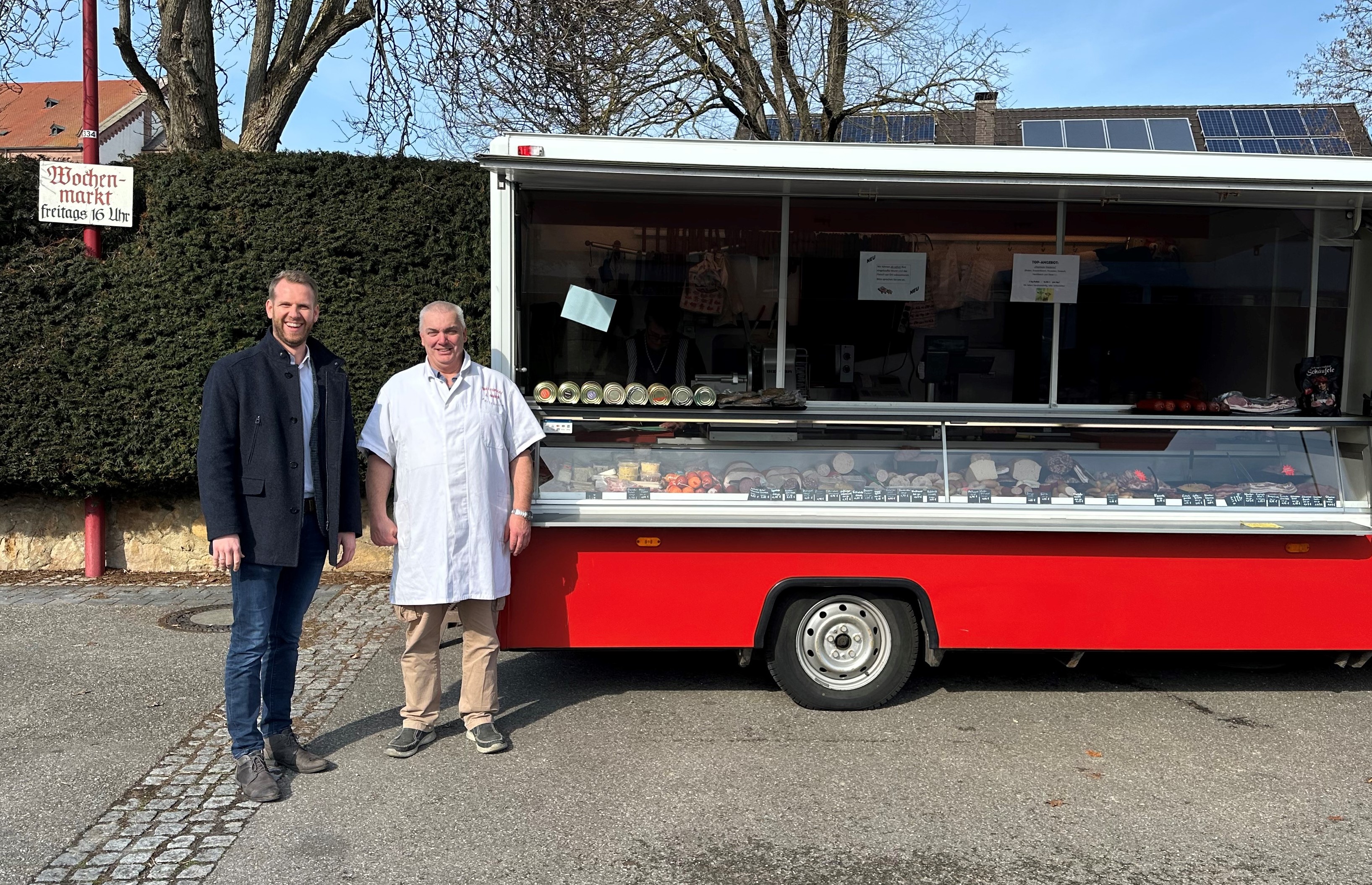 Künftig wird jeden Donnerstag von 13:30 bis 17:30 Uhr die Metzgerei Meier aus Waltershofen mit einem mobilen Verkaufswagen auf dem Synagogenplatz Wurstwaren verkaufen.