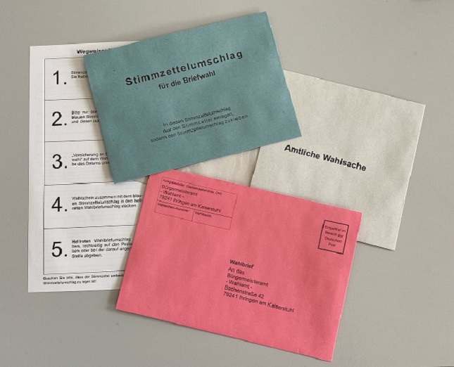 Sollten Sie Ihre Wahlbenachrichtigung nicht vorliegen haben, können Sie auch formlos per E-Mail an buergerbuero@ihringen.de einen Wahlschein beantragen.