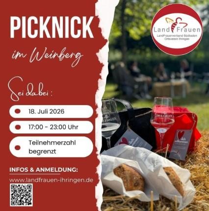 Am 18.07.2026 findet wieder unser beliebtes und leckeres Picknick im Weinberg statt. Wenn Du dabei sein möchtest, bitten wir Dich um eine Anmeldung per E-Mail an land-